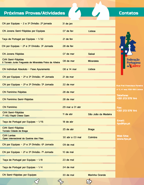 Duas provas num dia, a 10 de janeiro de manhã Rápidas com 18 participantes e à tarde Semi-Rápidas com 27 participantes. E 4 novos campeões nacionais de veteranos, nos escalões de +50 e +65.
