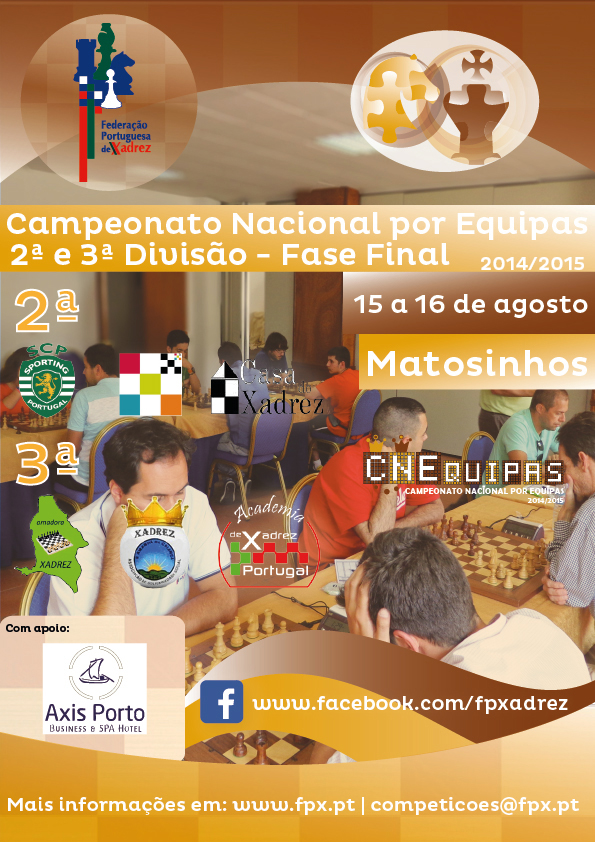 A grande prova nacional dos jovens portugueses chegou ao fim! O CN Jovens 2014/2015, que juntou os escalões desde os Sub-08 aos Sub-20, voltou novamente este ano ao Luso, realizando-se de 22 a 26 de julho. Teve o imprescindível apoio da Câmara Municipal da Mealhada, da Junta de Freguesia do Luso, do Inatel e do Hotel Eden, tendo sido realizada no Pavilhão Gimnodesportivo Municipal do Luso. Foram 16 os títulos em jogo, entre títulos individuais absolutos e femininos e os títulos coletivos absoluto e feminino. Depois de 7 Rondas em 5 dias, conhecemos os novos Campeões Nacionais, num evento que foi complementado por diversos momentos para todos os envolvidos.